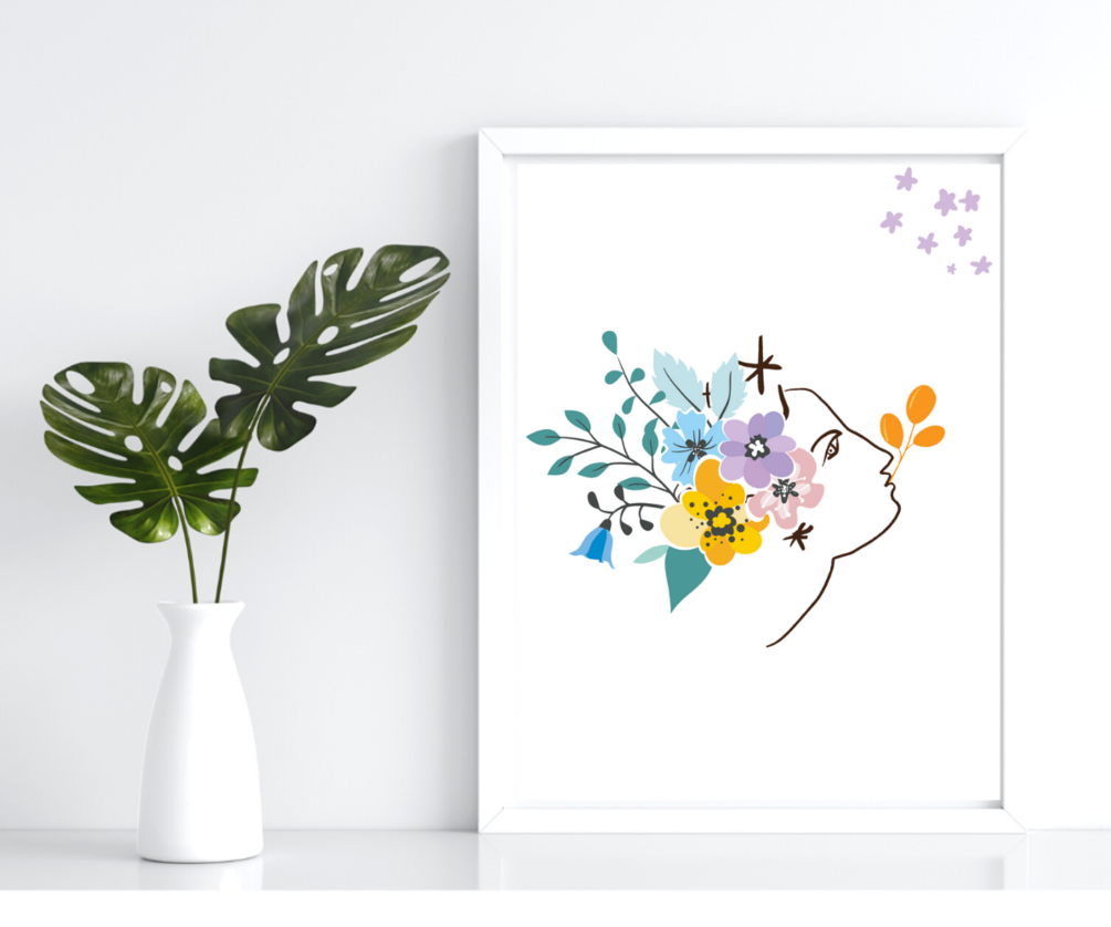 Flower Crown Art, Floral Head Woman Wall Art, Boho Wall Decor, Woman With Flowers, Floral Room Decor, Botanical Print, Printable Wall Art